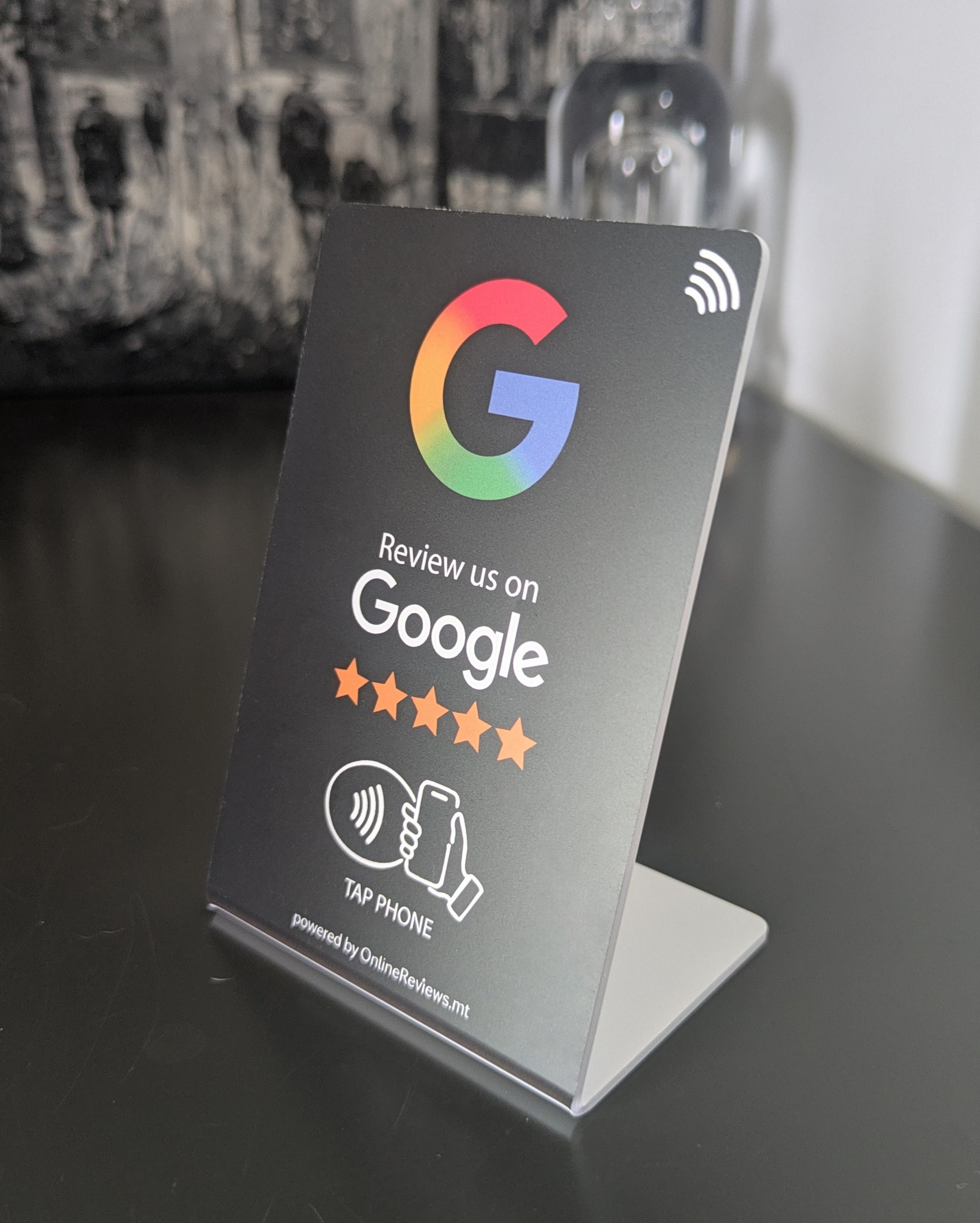 Make it easy for your customers to share their experience while it’s still fresh. Place the Google Review Table Stand right where your customers are — on tables, at your counter, or by the till — and encourage them to tap their phone. The stand is preloaded with an NFC chip that takes customers direct to your business Google review link, so leaving feedback takes just a moment.